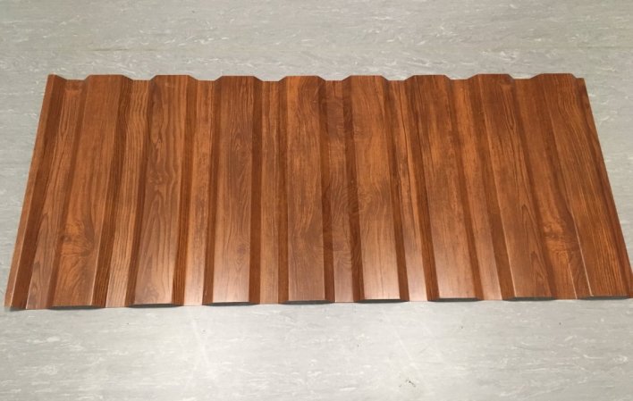 Производят его на основе полиэфирной краски. Покрытие отличается самой богатой цветовой гаммой. Цвета RAL8017(шоколадно-коричневый), 6005(темно-зеленый), 7024 (мокрый асфальт) и 3005(бордовый) могут быть двусторонними.