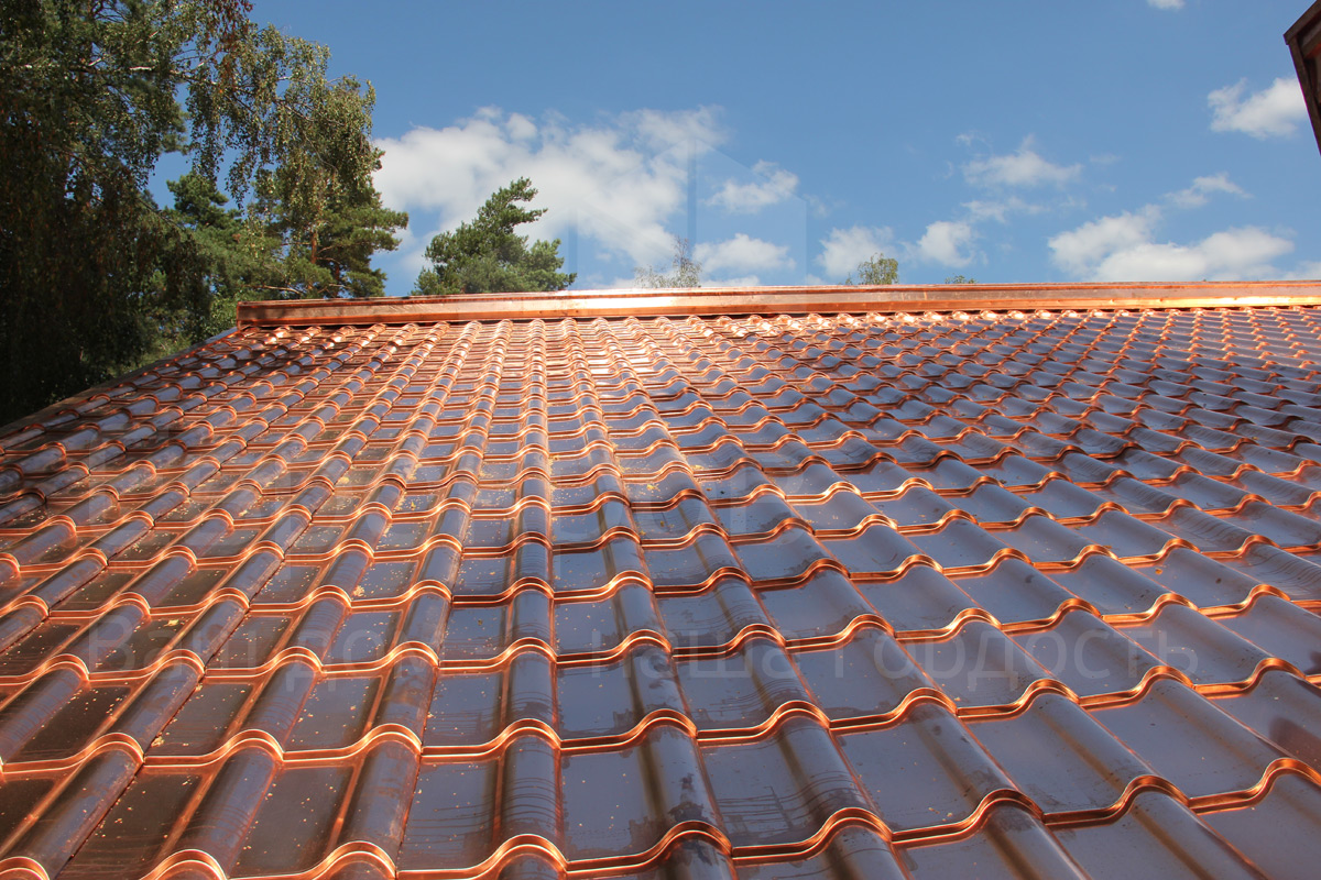Двустороннее (30мкм +25мкм) покрытие стального листа, цвет которого имитирует медь. Отличается стойким блеском, повторяющим оттенки настоящей меди.